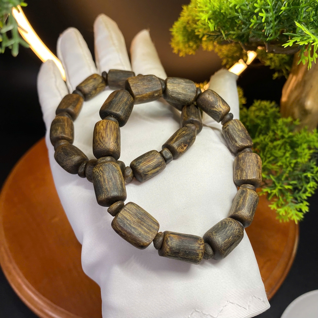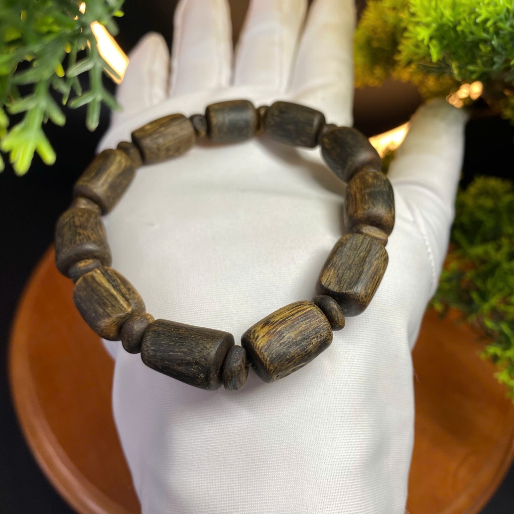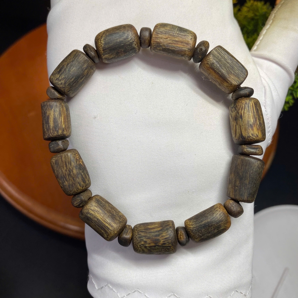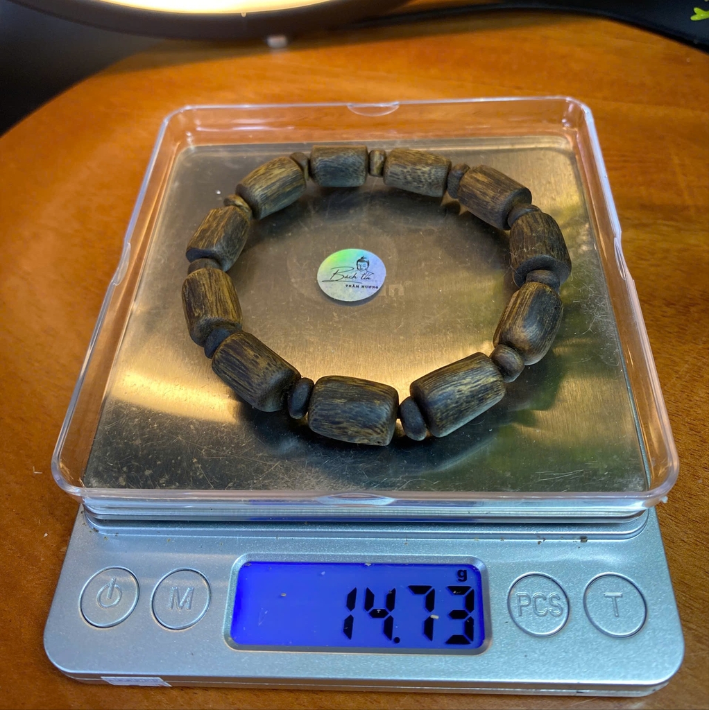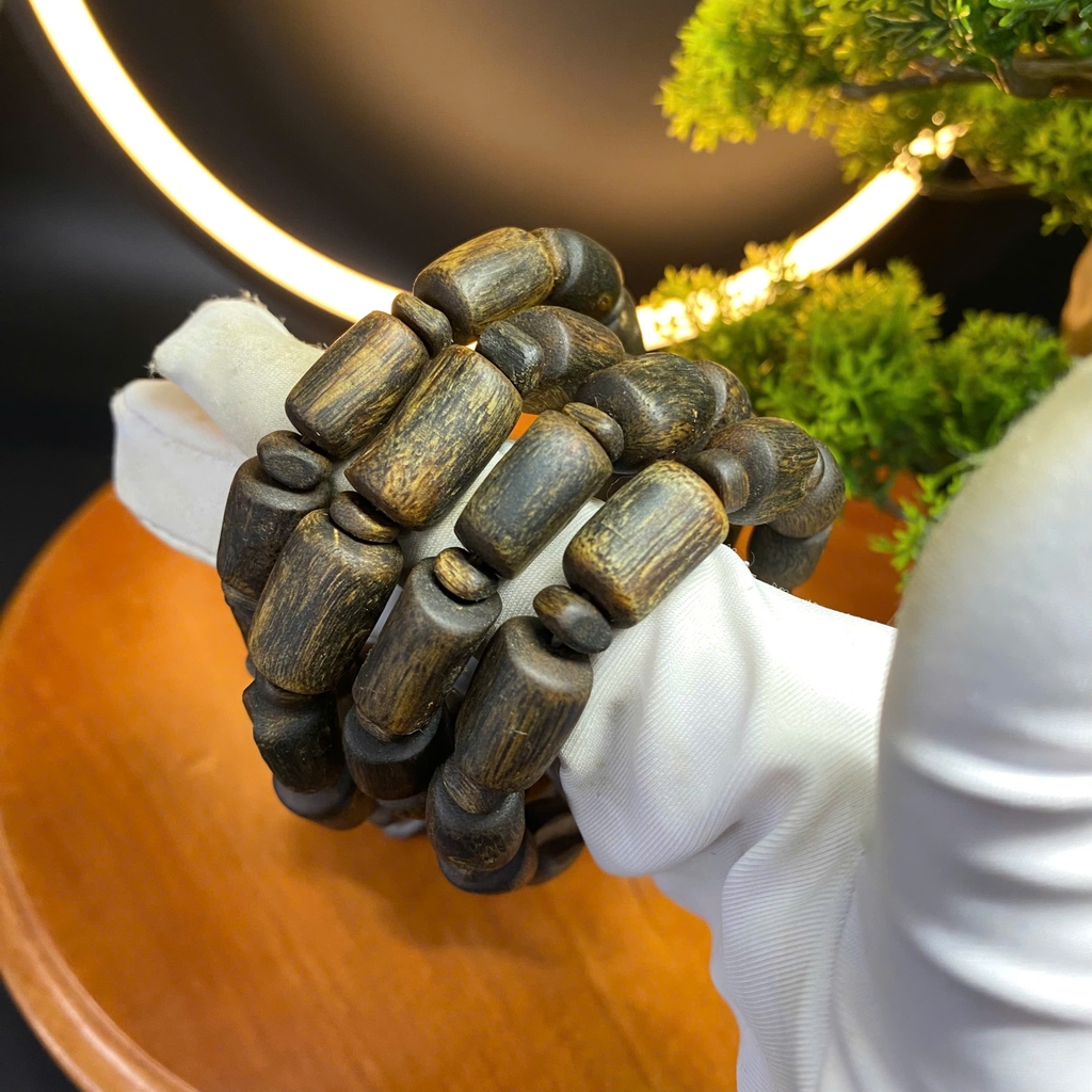 Đây là chiếc vòng Trầm Hương Kì Trồng từ đảo Hải Nam, thuộc dòng Tâm Kì Dầu đốt trúc, thơm sâu và đặc biệt: