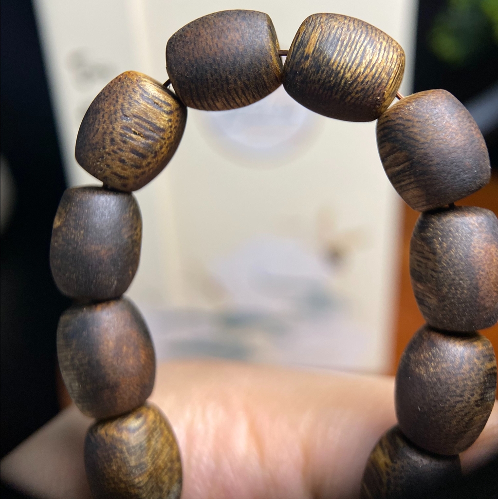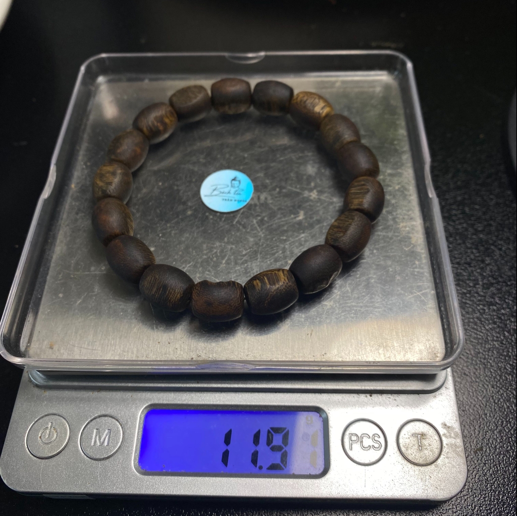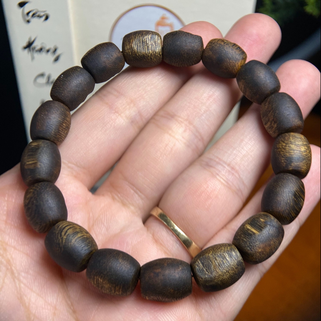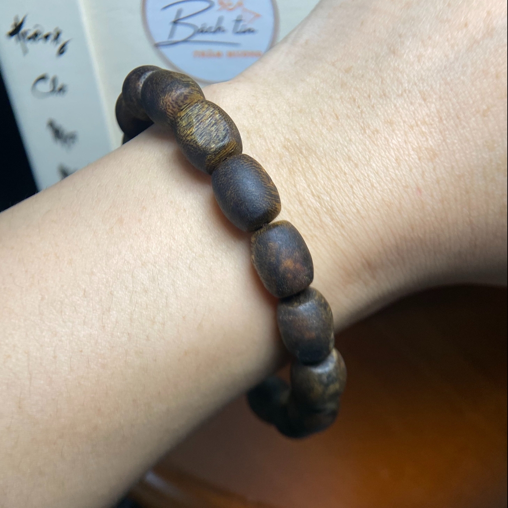 Vòng tay trầm hương Kỳ Hải Nam hạt bàn tính đơn tay nữ 6li nặng 4gram cận chìm dầu đen 050