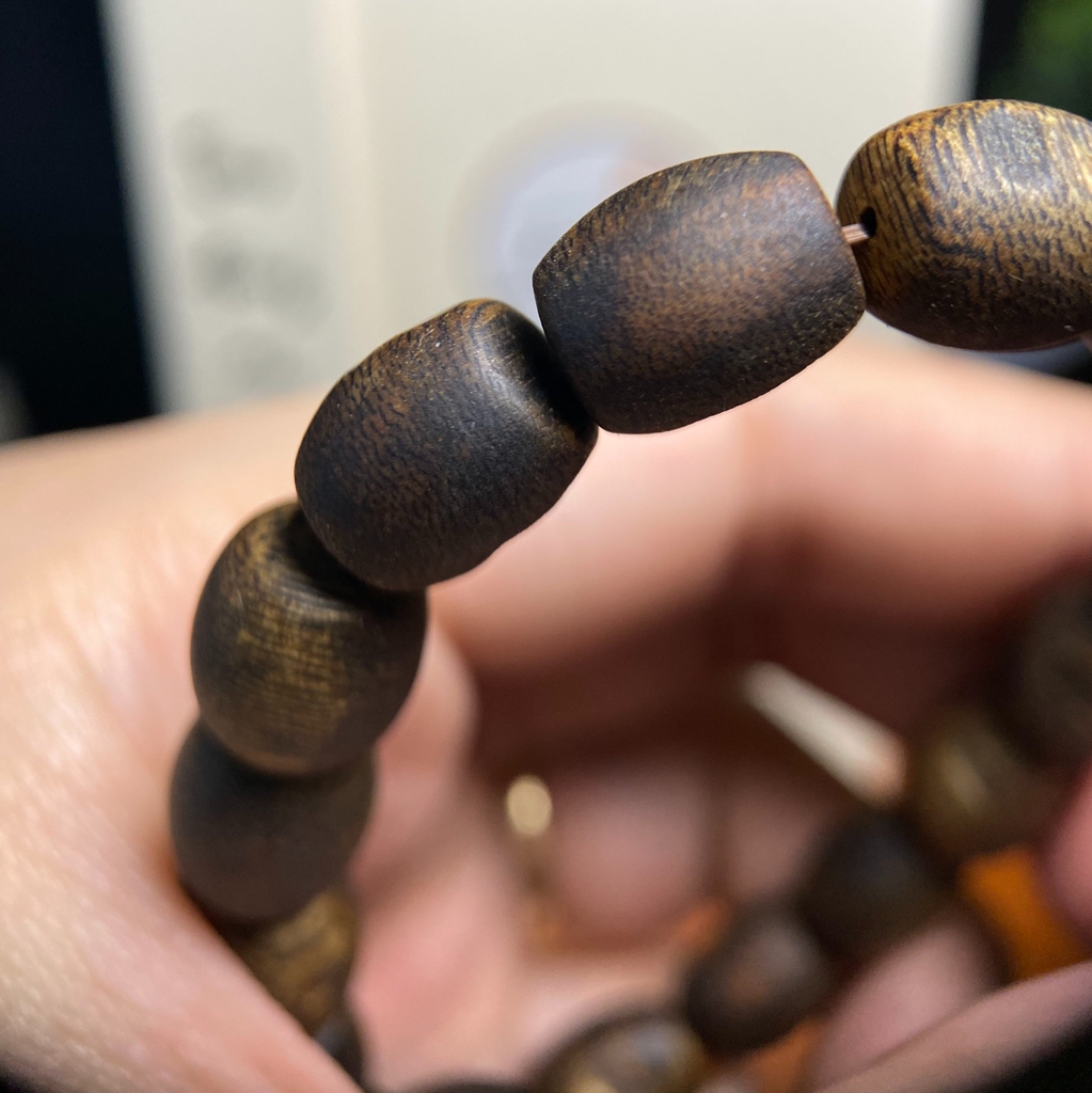 Vòng tay trầm hương Kỳ Hải Nam 108 hạt đốt trúc đều dầu chìm Super King 5li tay nam nữ cuốn 4 -5 vòng